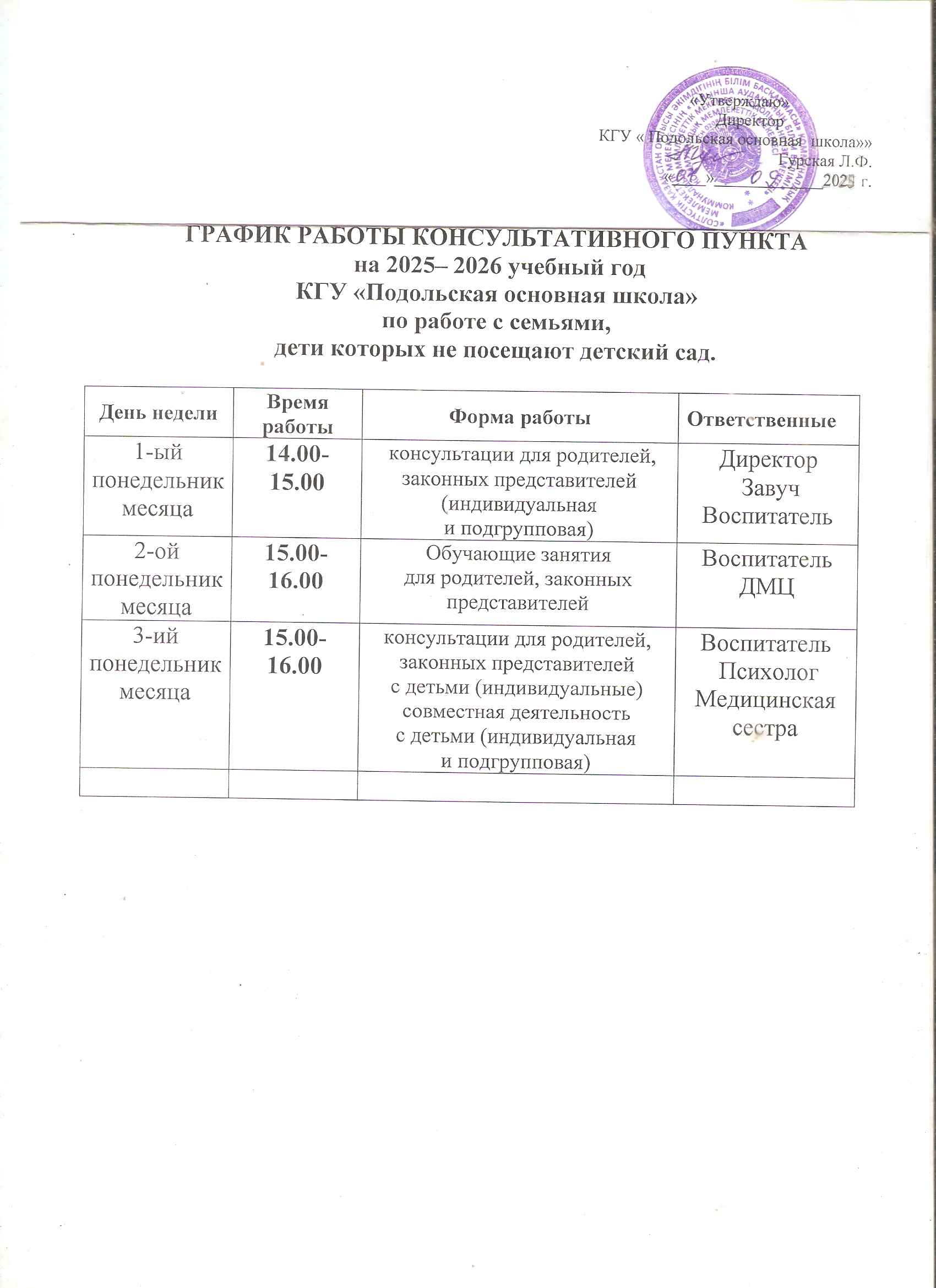 КГУ «Отдел образования Тайыншинского района» КГУ «Подольская базовая школа»